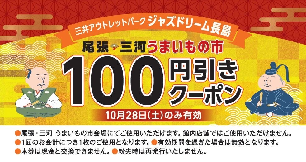 内容 :『尾張・三河 うまいもの市』(イベント会場)でご利用いただける100円分のクーポンをプレゼント