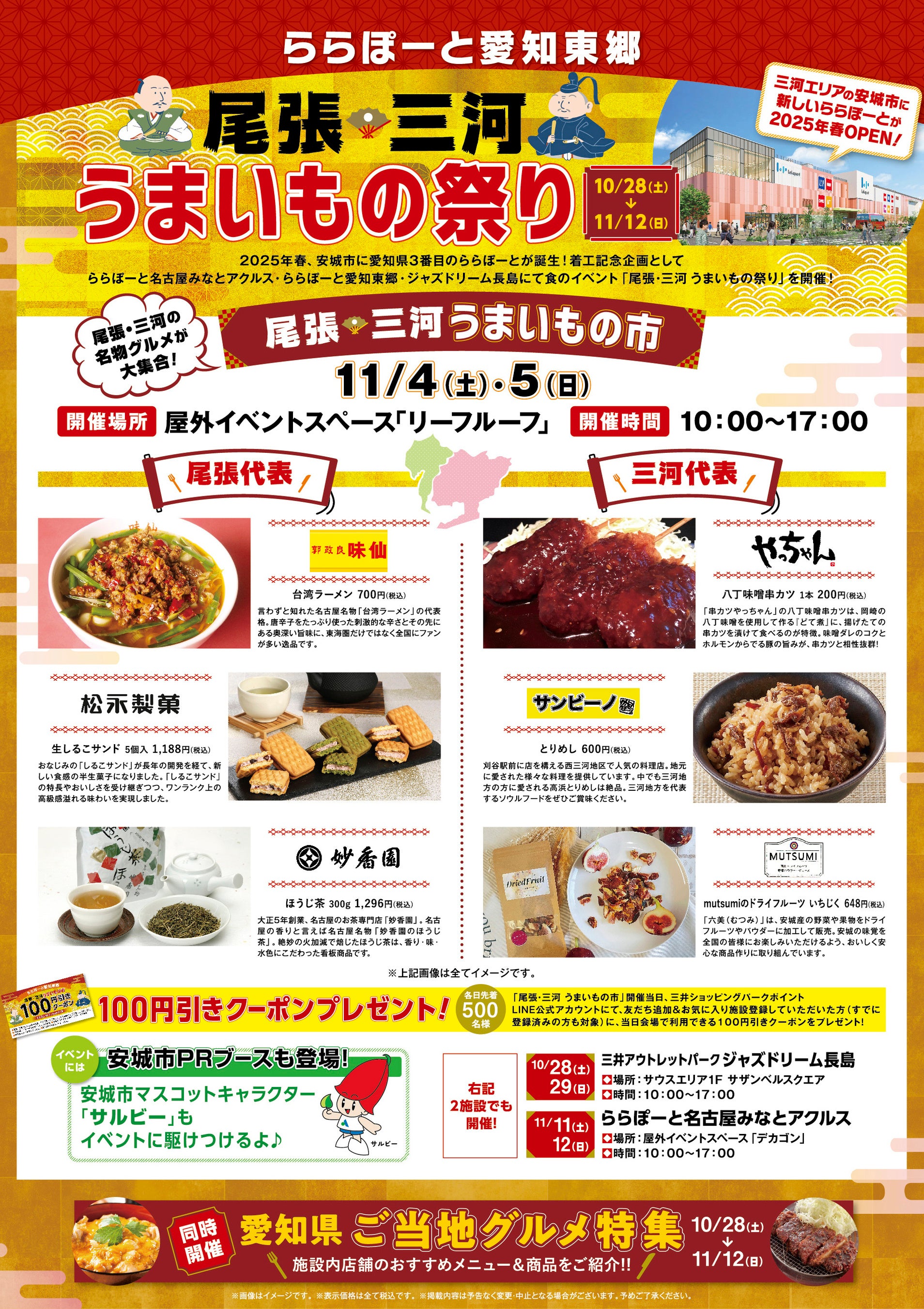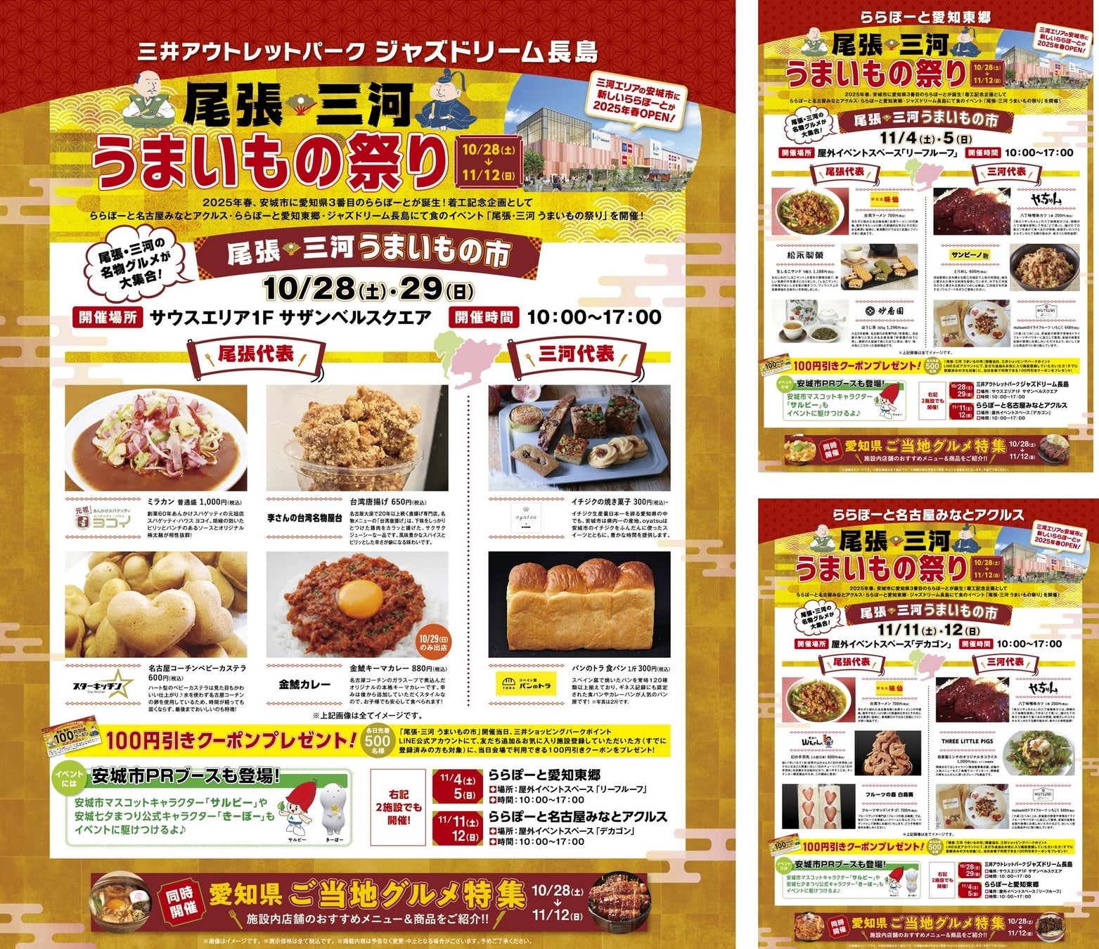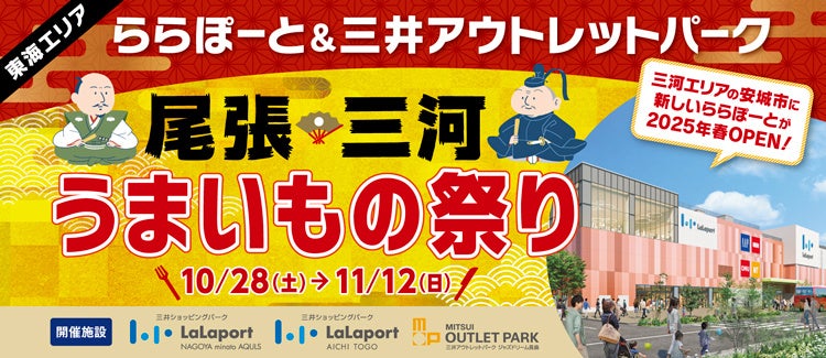 愛知県3番目のららぽーと(2025年春開業予定)の建築着工記念 東海エリア ららぽーと&三井アウトレットパーク「尾張・三河 うまいもの祭り」様々なキャンペーンも実施開催