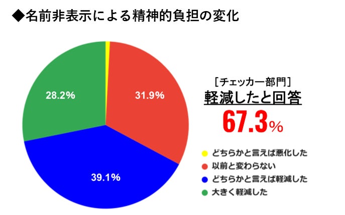 また、チェッカー(レジ)部門の67%、従業員全体の57%が「精神的負担の軽減を実感した」と回答しています。