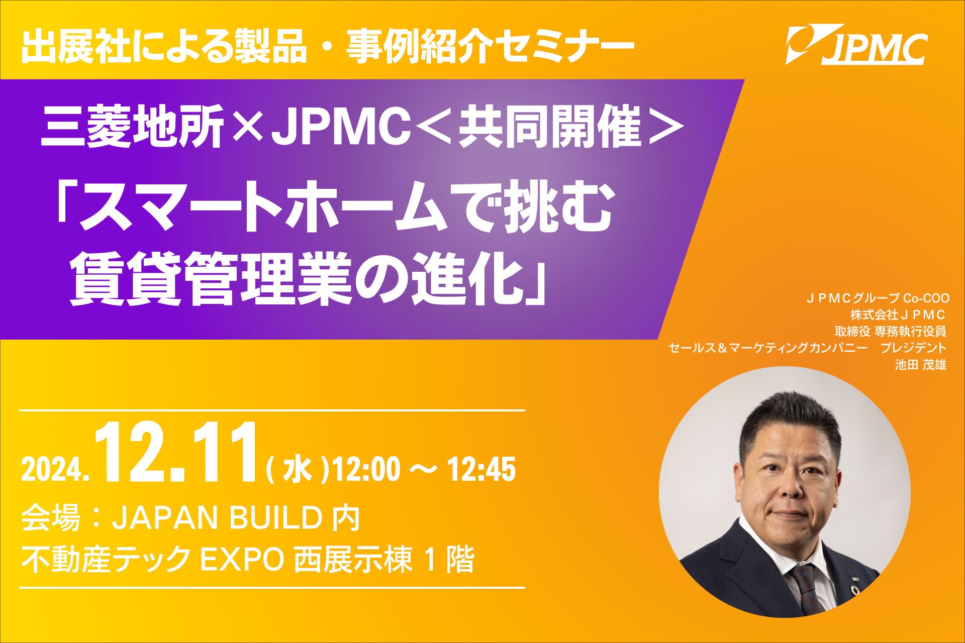 “持続可能な賃貸経営”を追求する株式会社JPMC(本社:東京都千代田区、代表取締役 社長執行役員:武藤 英明、以下「JPMC」)は、RX Japan株式会社が主催する展示会『ジャパンビルド東京内 第5回不動産テックEXPO[東京]』にて12月11日(水)に行われる、「出展社による製品・事例紹介セミナー」に登壇します。
