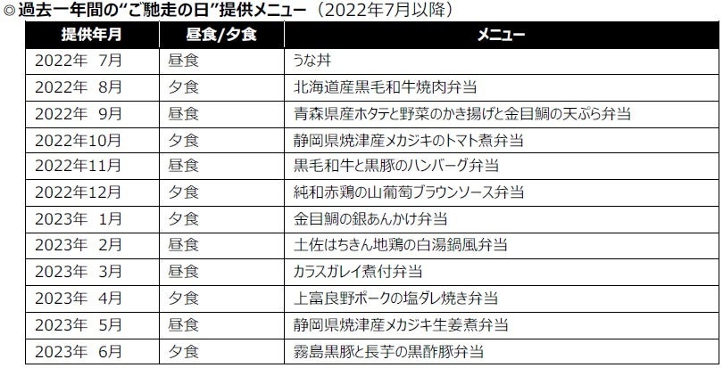 当社では、栄養バランスが整った食事を摂ることによる“体の栄養”に加え、“心の栄養”につながる取り組みとして、“ご馳走の日”を月に1回設けています。“ご馳走の日”には、各地域の特産品・名産品などを使用した特別メニューを、通常のお弁当(普通食+ごはん)と同じ594円(税込)で提供。普段はなかなか食べる機会の少ない食材やメニューで、届くまでの待ち遠しさや誰かに自慢したくなる気持ちを感じていただけるようなお弁当をお届けしています。