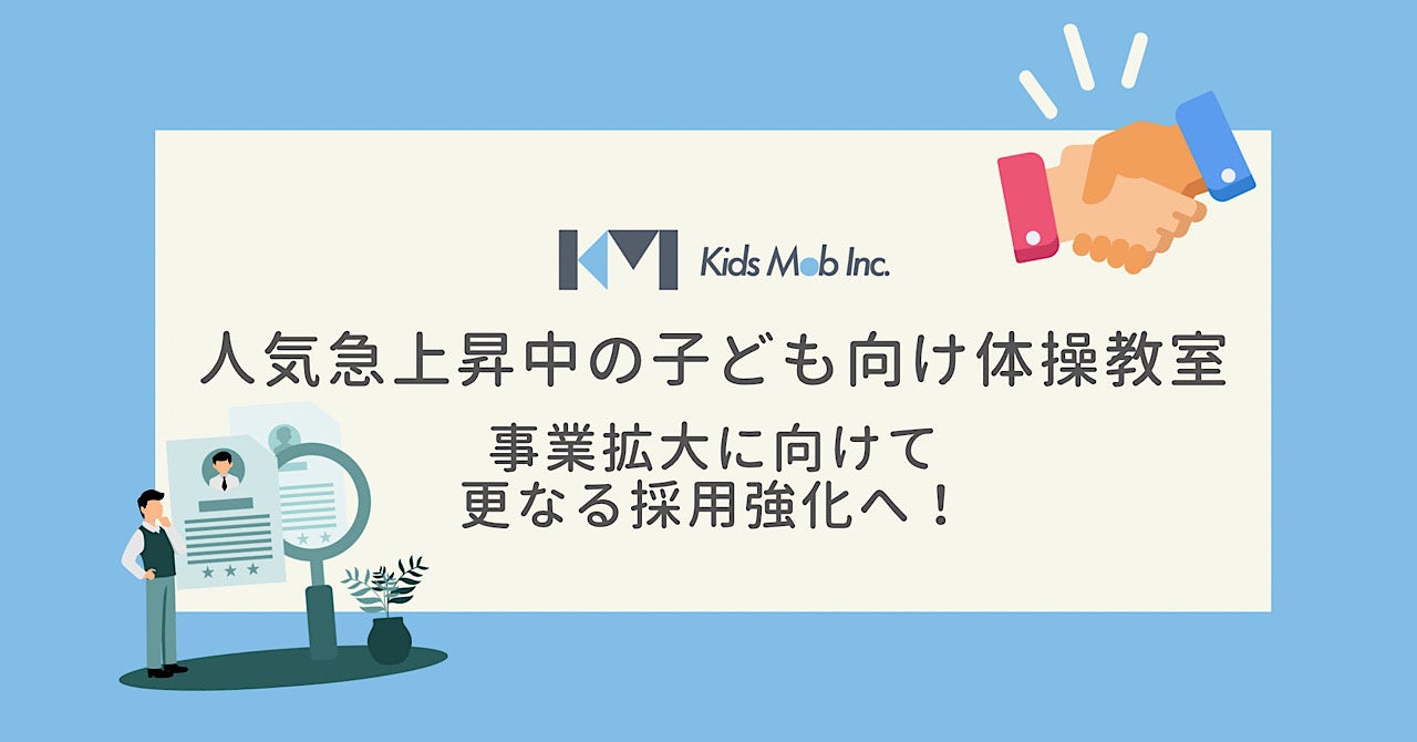 【キッズモブ株式会社】都内で人気急上昇中の子ども向け体操教室 事業拡大に向けて、更なる採用強化へ!