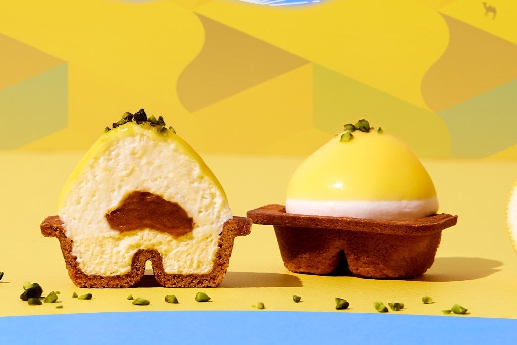 チーズワンダー キャメルイエローの美味しさの決め手は、レモンの酸味、塩キャラメルソースの甘みと塩味、チーズの旨みのバランスです。挟み焼きによるザクザクのクッキー生地に、濃厚でしっとりとした生チーズスフレを載せ、フワッとした食感でチーズの風味が香るレモン生チーズムースを絞りました。生チーズスフレとレモン生チーズムースの間には自家製の塩キャラメルソースをイン。さっぱりとしながらも満足感のある1品です。作り立てを急速冷凍しているので、解凍時間によって、シャリっとアイスのような食感や、とろりとしたクリームの食感をお楽しみいただけます。(おすすめは全解凍)