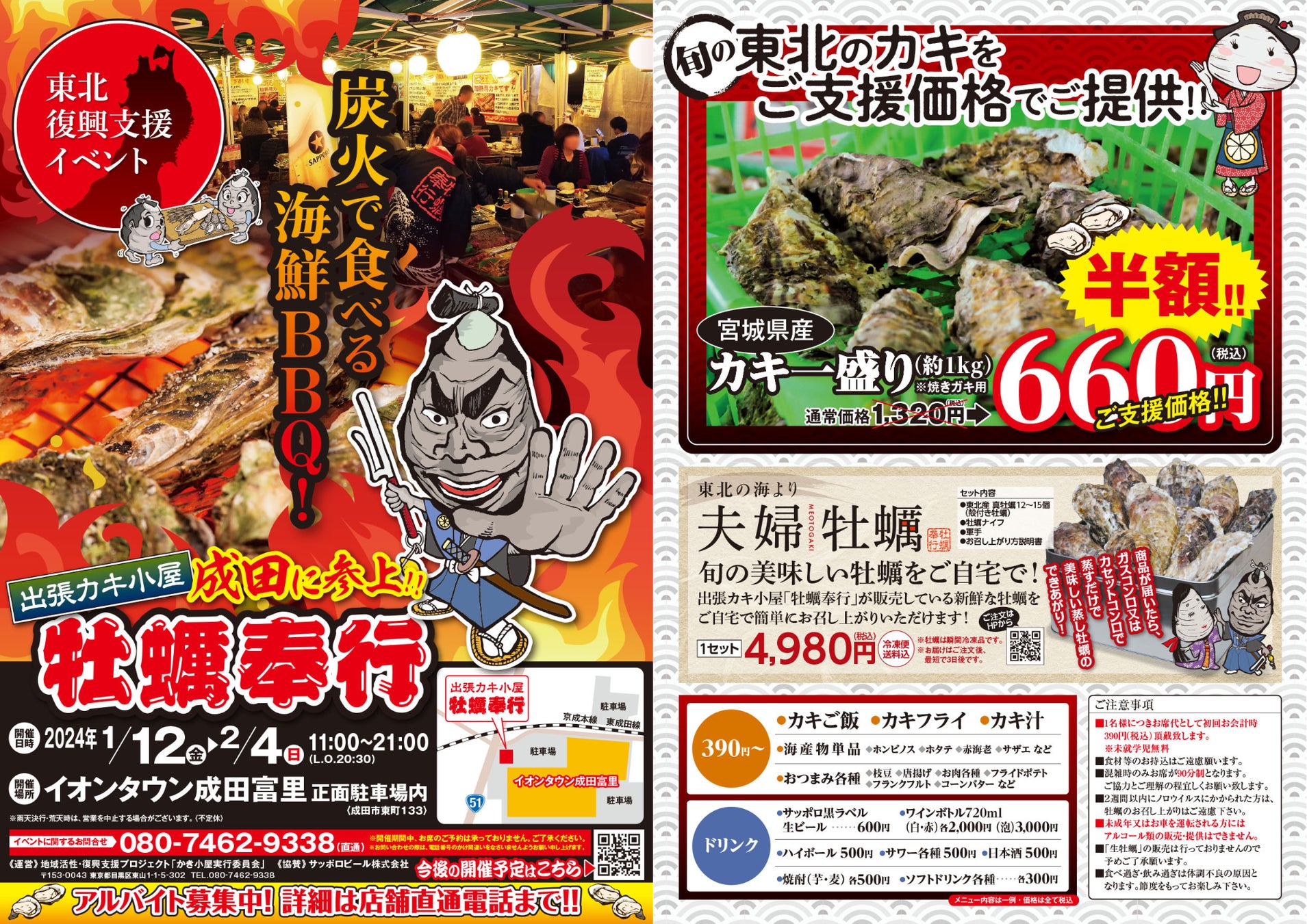 『イオンタウン成田富里店』に登場!地域活性・東北復興支援プロジェクト 出張カキ小屋『牡蠣奉行』(かきぶぎょう)