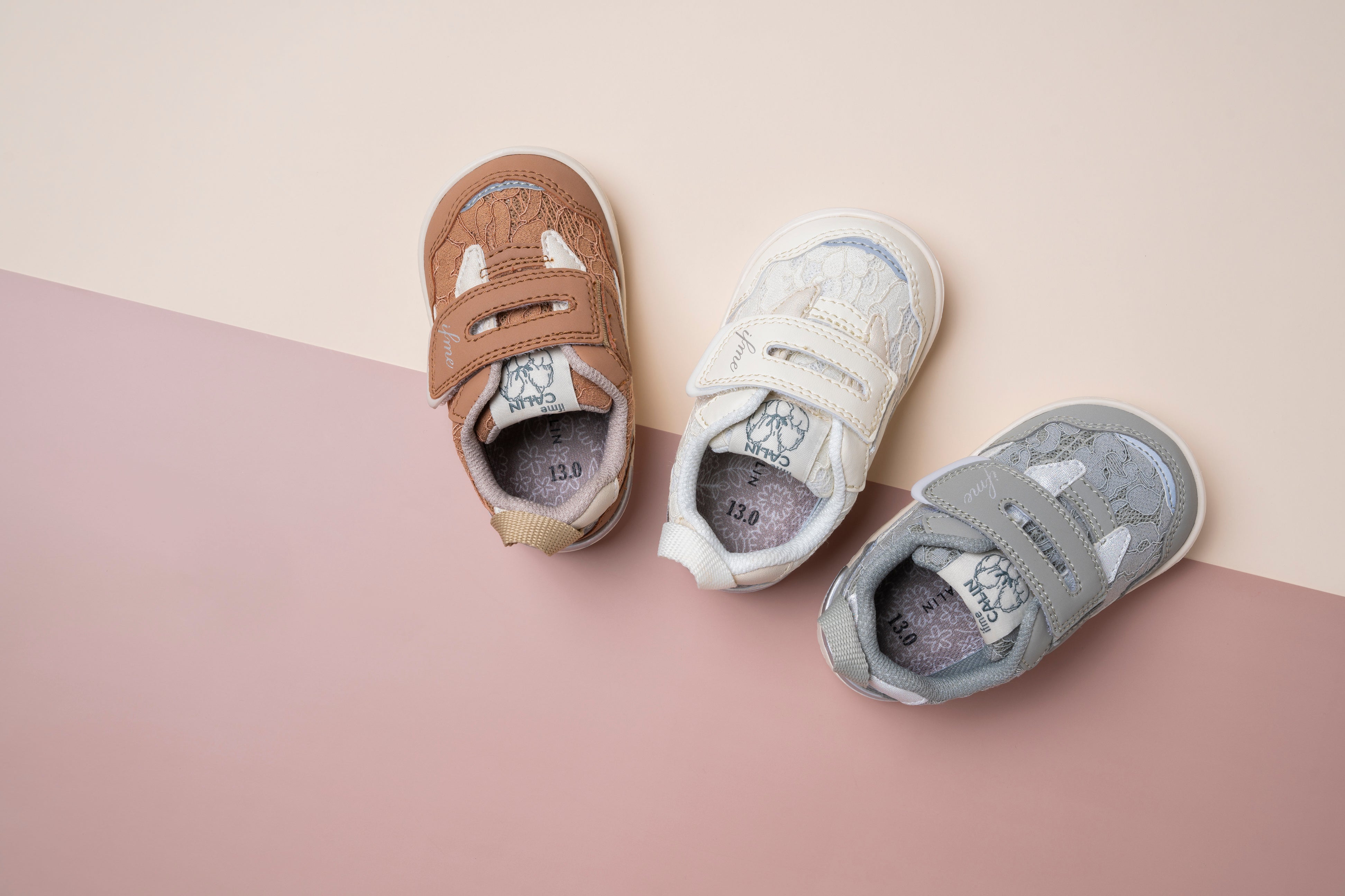 「ifme CALINママ」は、「ママ専用のシューズがほしい」という多くのお客様の声を受け開発した、IFME初のママ向けシューズです。さらに、「子どもとお揃いで履きたい」というご要望に応え、ベビーサイズ・キッズサイズシューズにも同じラインナップを揃え、親子でのリンクコーデが楽しめるアイテムとなっています。