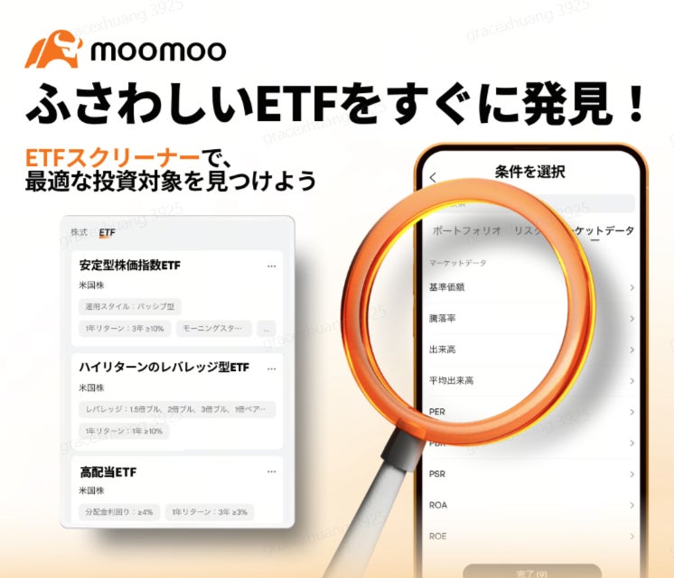 moomoo証券(ムームー、本社:東京都渋谷区、代表取締役社長:伊澤フランシスコ)は、この度ETF(上場投資信託)の取り扱い銘柄を主要ネット証券5社※比較で最多の440銘柄に拡大しました。moomooアプリでETFスクリーナーを使えば、話題の半導体ETFの銘柄比較も容易にできます。