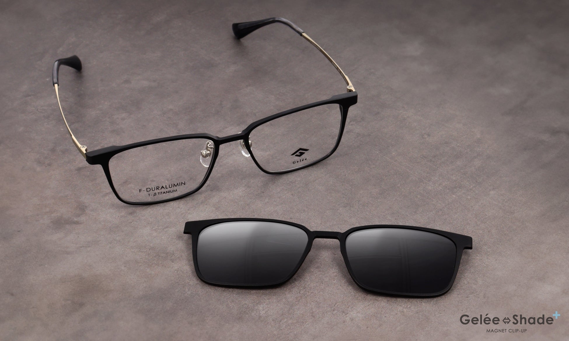 【Gelee新型 Gelee Shade +」度付きメガネが瞬時にサングラスに!脱着式クリップオンに「跳ね上げ機能」を追加。特許申請中の独自機構で利便性が大幅向上。