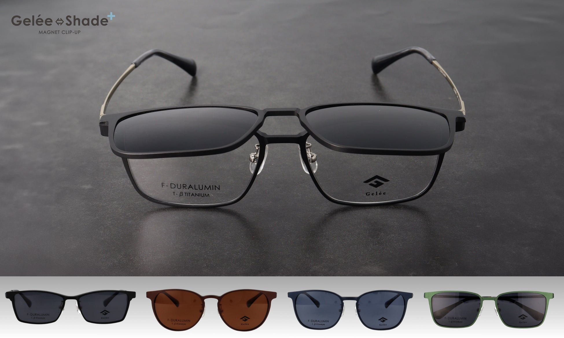 株式会社FUJIKON HOLDINGS(福井県鯖江市 代表取締役:藤田 徳之) は、高性能素材「ジュラルミン」を採用したメガネブランド「Gelee(ジュレ)」シリーズより、マグネット式クリップオンサングラスの新型モデル「Gelee Shade +(ジュレシェイド プラス)」を今年の12月中旬から全国の眼鏡店およびオンラインストアで順次発売します。