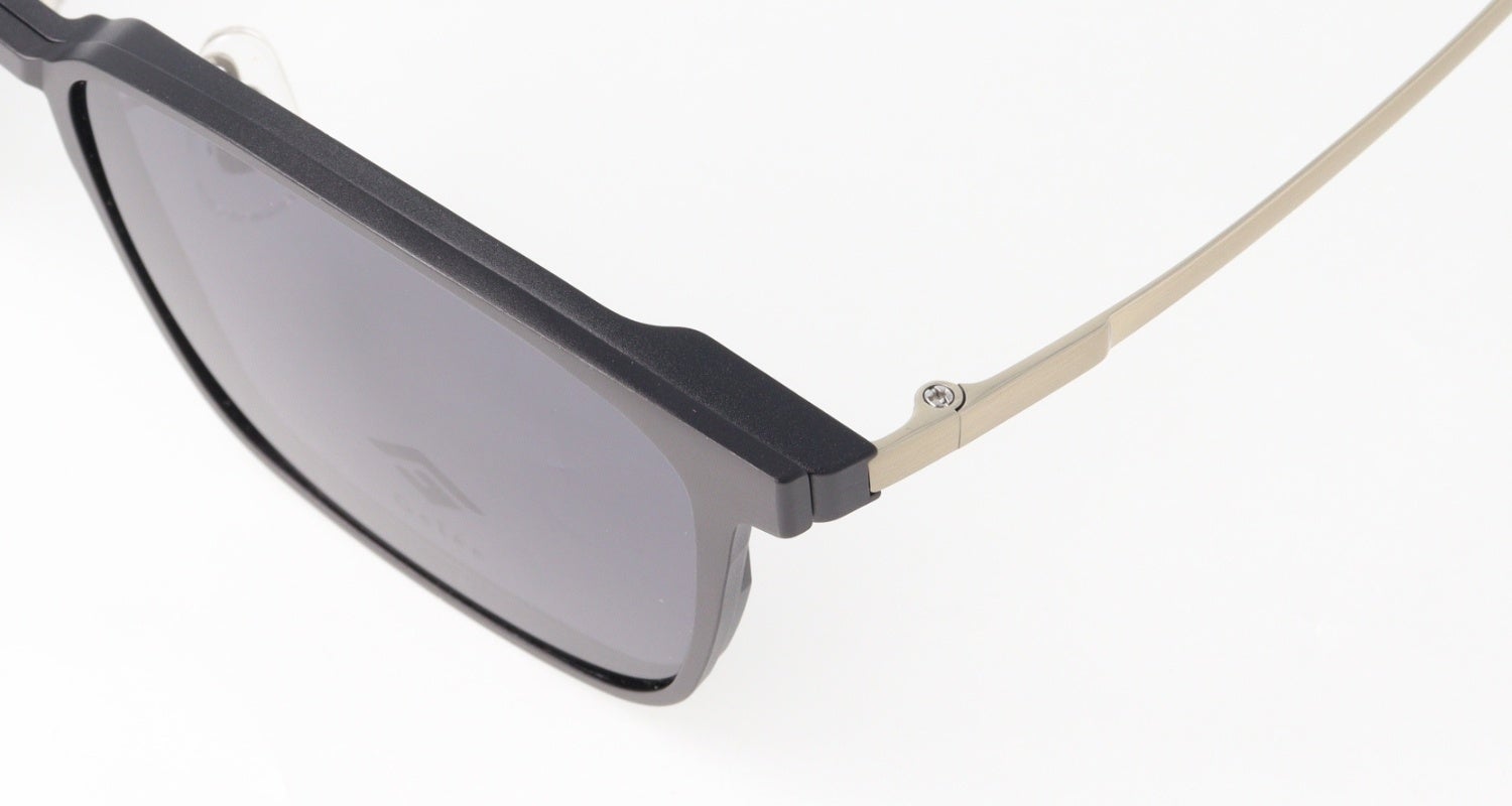 従来のマグネット式クリップオンは、本体のメガネフレームとサングラス側の前枠がピタッと高精度に密着していることが、機能性と外観の美しさにおいて非常に重要です。