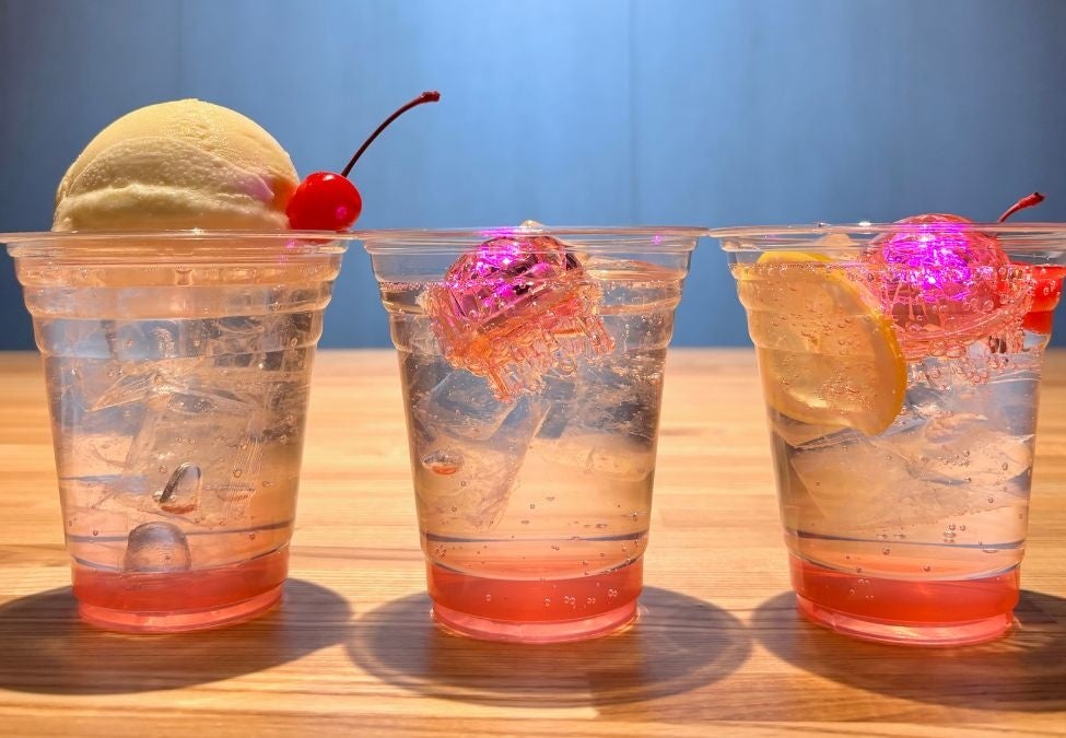 販売価格:光るクラゲ入り桜サワー(アルコール) 890円(税込) 光るクラゲ入り桜ソーダ 790円(税込)