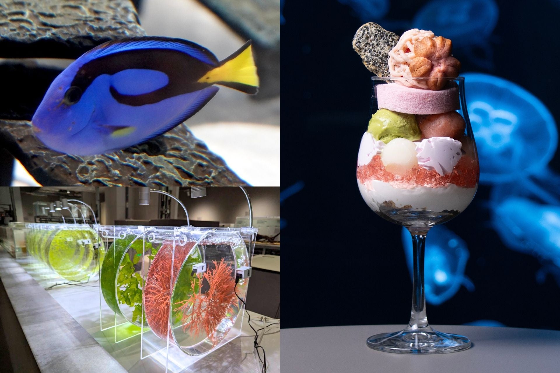 4F「LABORATORY」で人気のスジアオノリの展示に加え、春に旬を迎える2つの海藻と、藻食性魚類の“ナンヨウハギ”を初展示します。そのほか、AOAO SAPPORO夜の定番メニュー「季節のシメパフェ」の春の新商品や、キタイワトビペンギンの “飾り羽”をつかったラッキーアイテムなどが登場します。