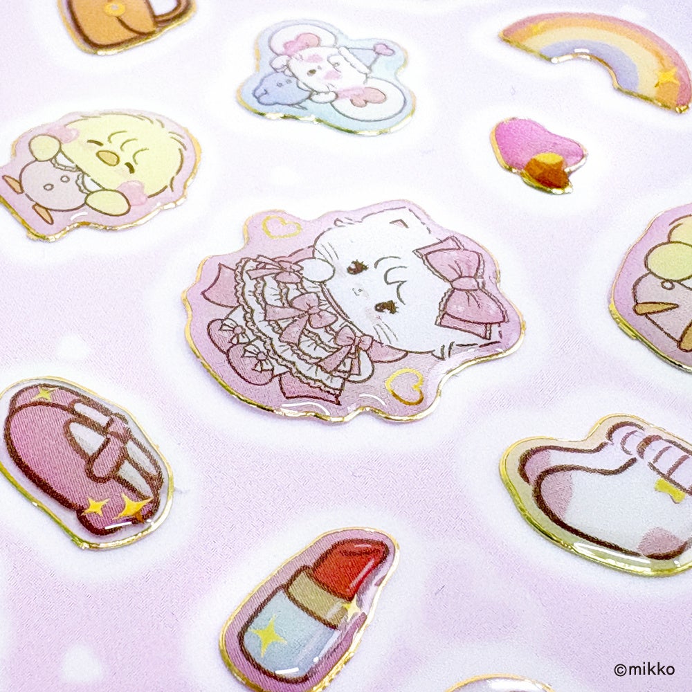 キラキラの箔押しがされた、ぷっくり膨らんだクリアシール。