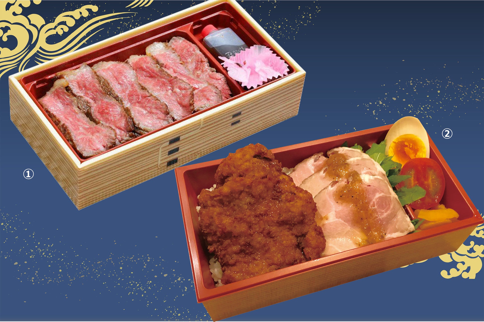 福井のソウルフードであるソースカツとローストポークを盛り合わせた弁当。