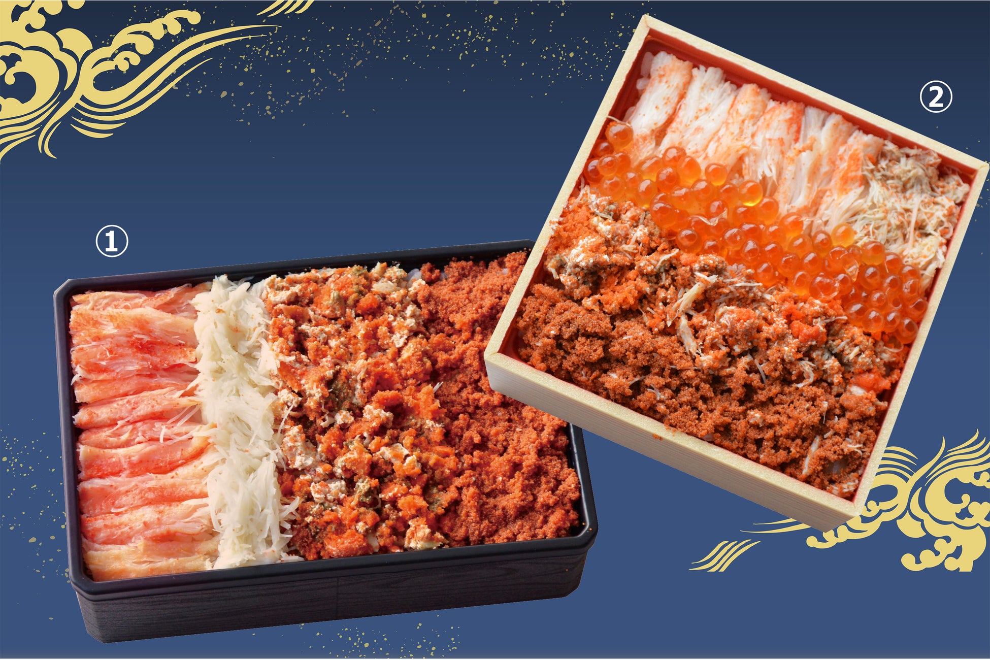 せいこかにの外子・内子に加え、たっぷりいくらをのせた豪華弁当。