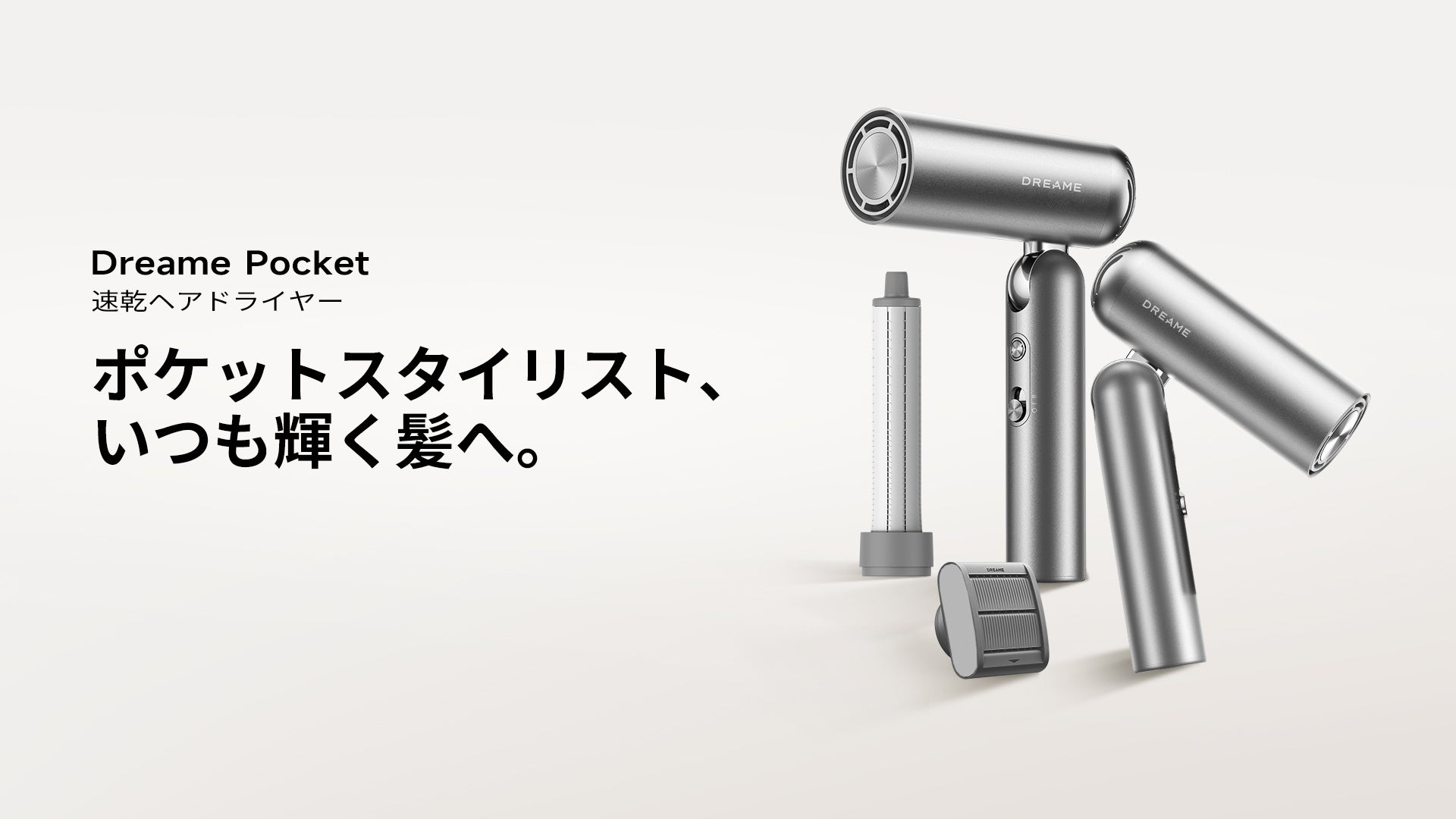 【新商品】DREAMEが新型折りたたみ式速乾ヘアドライヤーPocketを新発売!超軽量・ポータブルで、ヘアケアとスタイリングを一台2役!