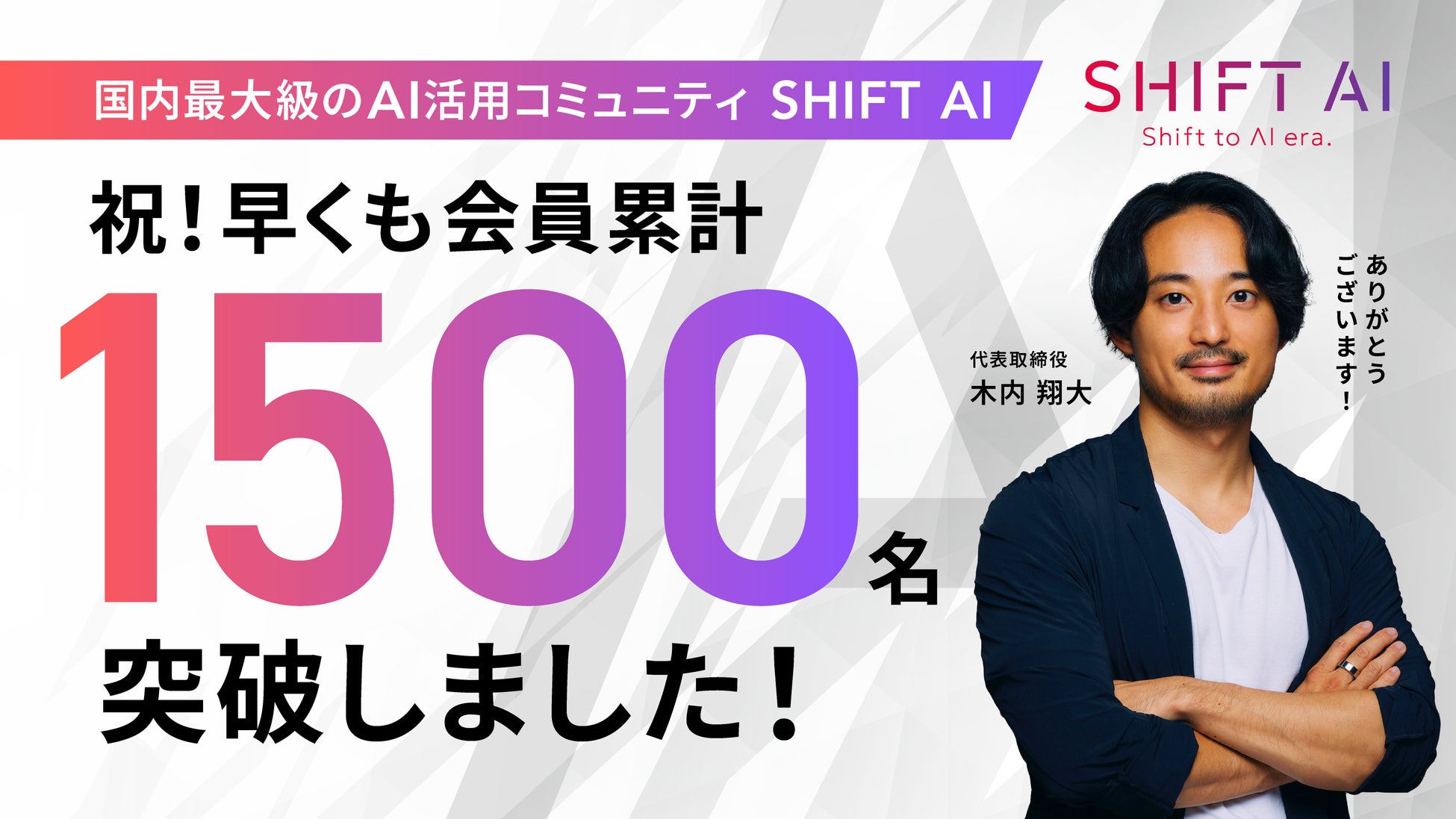 SHIFT AIコミュニティの会員数が、記念すべき1,500名を超えましたことを、心からの感謝を込めて報告いたします。この重要な節目に際し、SHIFT AIを主催する立場として、皆様のAIへの熱い関心と持続的な支援が私たちの成長を支えてくれたことに深く感謝申し上げます。