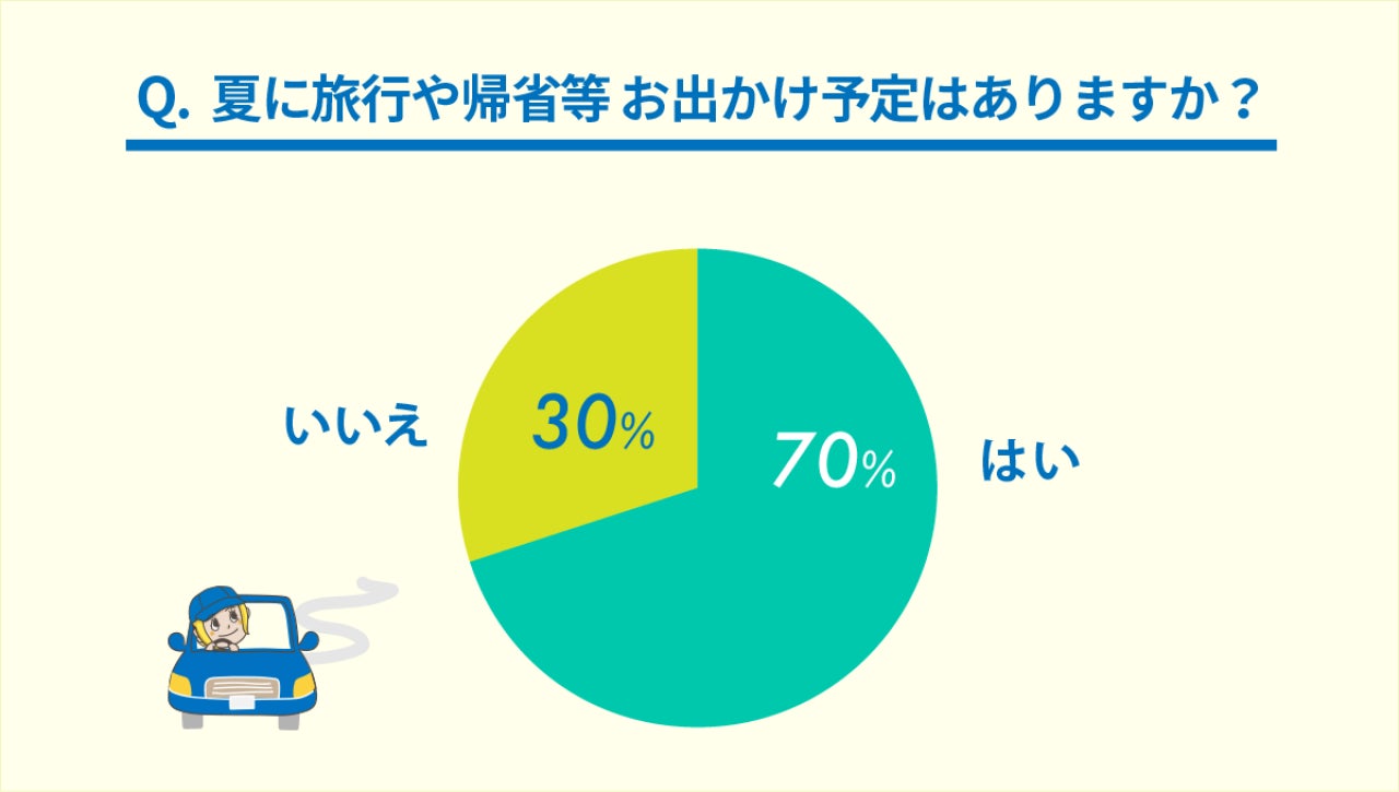 夏に旅行や帰省等お出かけ予定のある方は、回答者のうち7割を占めました。