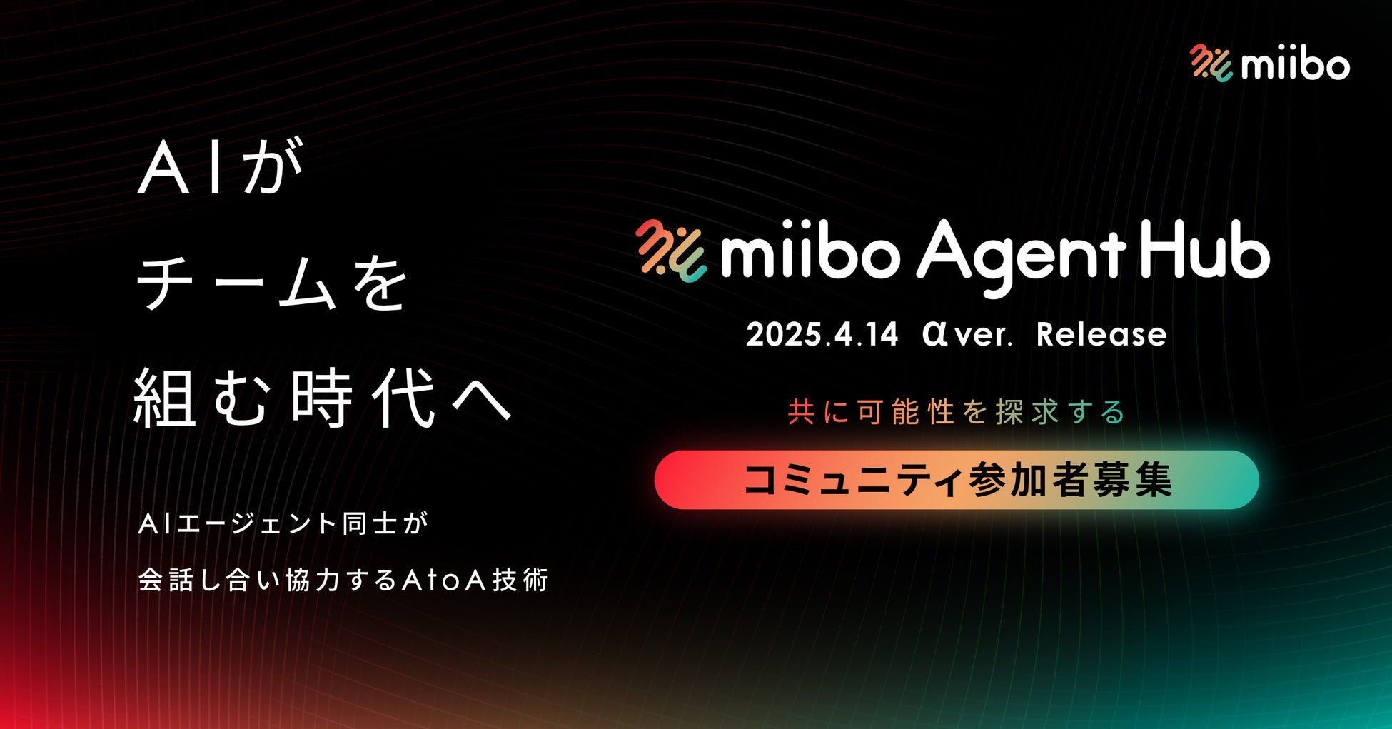 A2Aをはじめ、マルチエージェントの仕組みは今後急速に広がりを見せていくと考えられます。miibo Agent Hubはさまざまなエージェントを交流させ、組織の知識と創造性を最大限に引き出せるプラットフォームを、誰でも簡単に作れる世界を実現していきます。