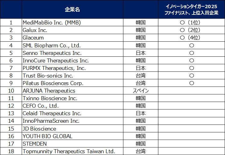 ・製薬企業の事業開発経験を持つ専門家による厳正な審査を経て、日本・韓国・台湾の18社が選抜