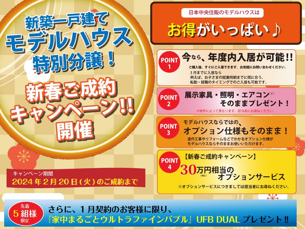 さらに、お得な30万円分のオプションサービス「モデルハウス新春ご成約キャンペーン」も同時に開催。