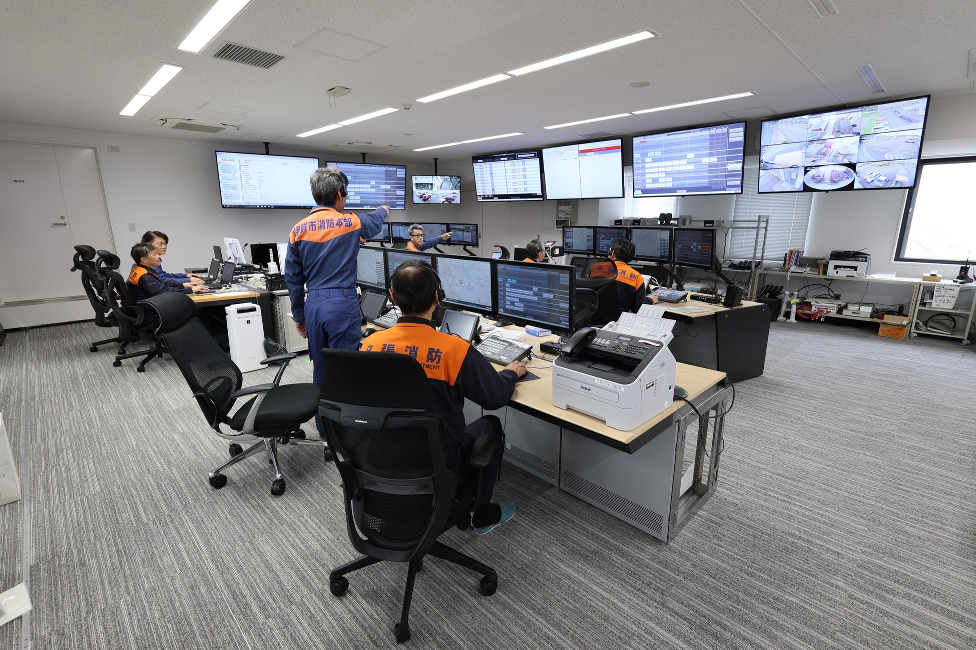 伊賀地域消防指令センターでは、年間でおよそ14,000件の通報を一括して受け付け、各管轄の消防車・救急車を災害現場に迅速に出動させます。これにより、市民の安全・安心を確保するための迅速な応援体制を実現します。