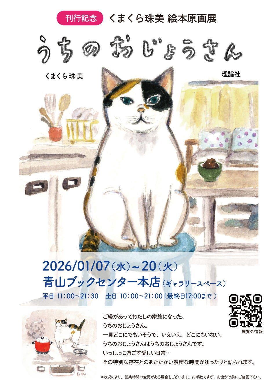 株式会社理論社(本社:東京都千代田区)は『うちのおじょうさん』(作:くまくら珠美)を2025年12月27日に発売しました。また『うちのおじょうさん』の発売記念して、1/7(水)~青山ブックセンター本店にて原画展を開催いたします。