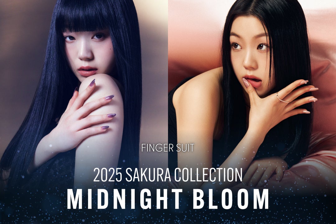 KPOPアイドルも愛用する、指先で完成する新しいファッションスタイルを提案する韓国発ネイルウェアブランド 「FINGER SUIT(フィンガースーツ)」から、2025 SAKURAコレクション「MIDNIGHT BLOOM」が2025年3月6日(木)より登場します。春の夜、幻想的に咲き誇る夜桜の輝きから着想を得た、儚く美しいデザインにご注目ください。
