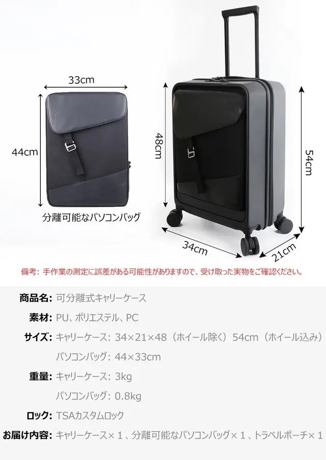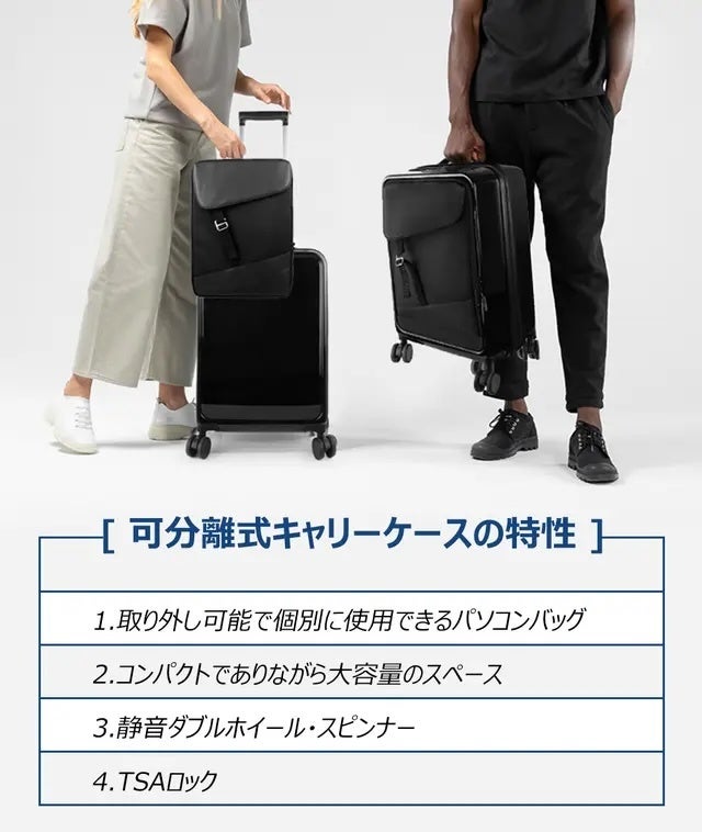 手荷物検査や機内でも分けて持ち運び可能、TSAロック、360度回転ホイール、機内持ち込み対応
