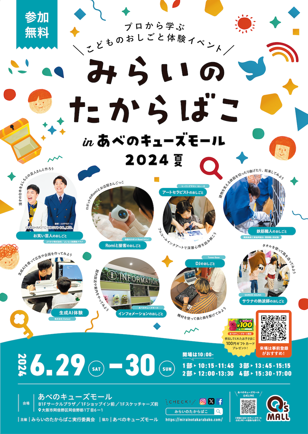 地域共創こどものおしごと体験イベント「みらいのたからばこinあべのキューズモール2024夏」2024年6⽉29⽇(⼟)・30⽇(⽇)開催!