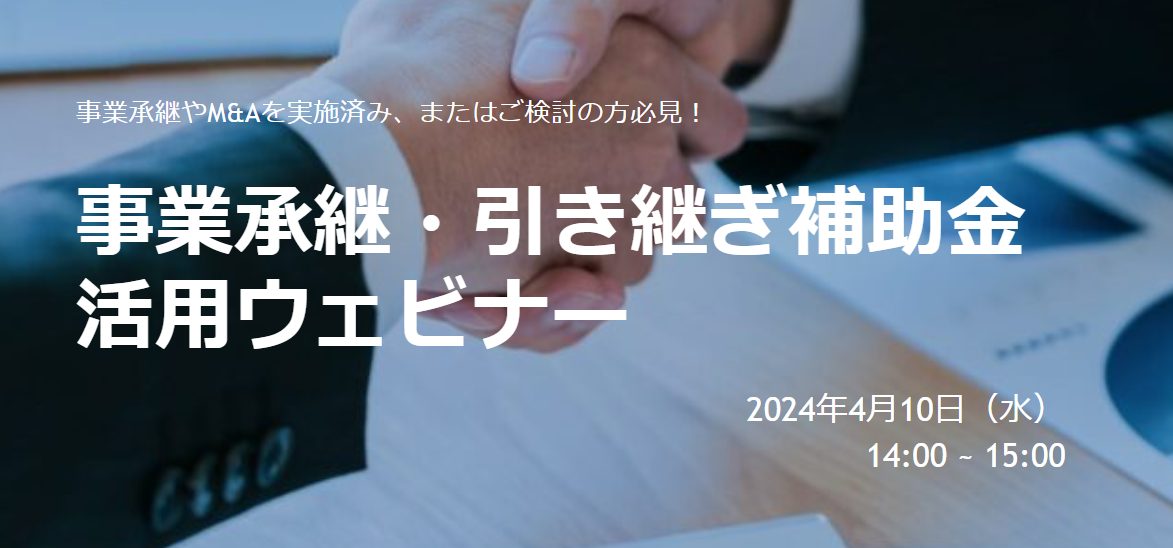 【4/10(水)開催】事業承継やM&Aを実施済み、またはご検討の方必見!事業承継・引継ぎ補助金活用ウェビナーのお知らせ