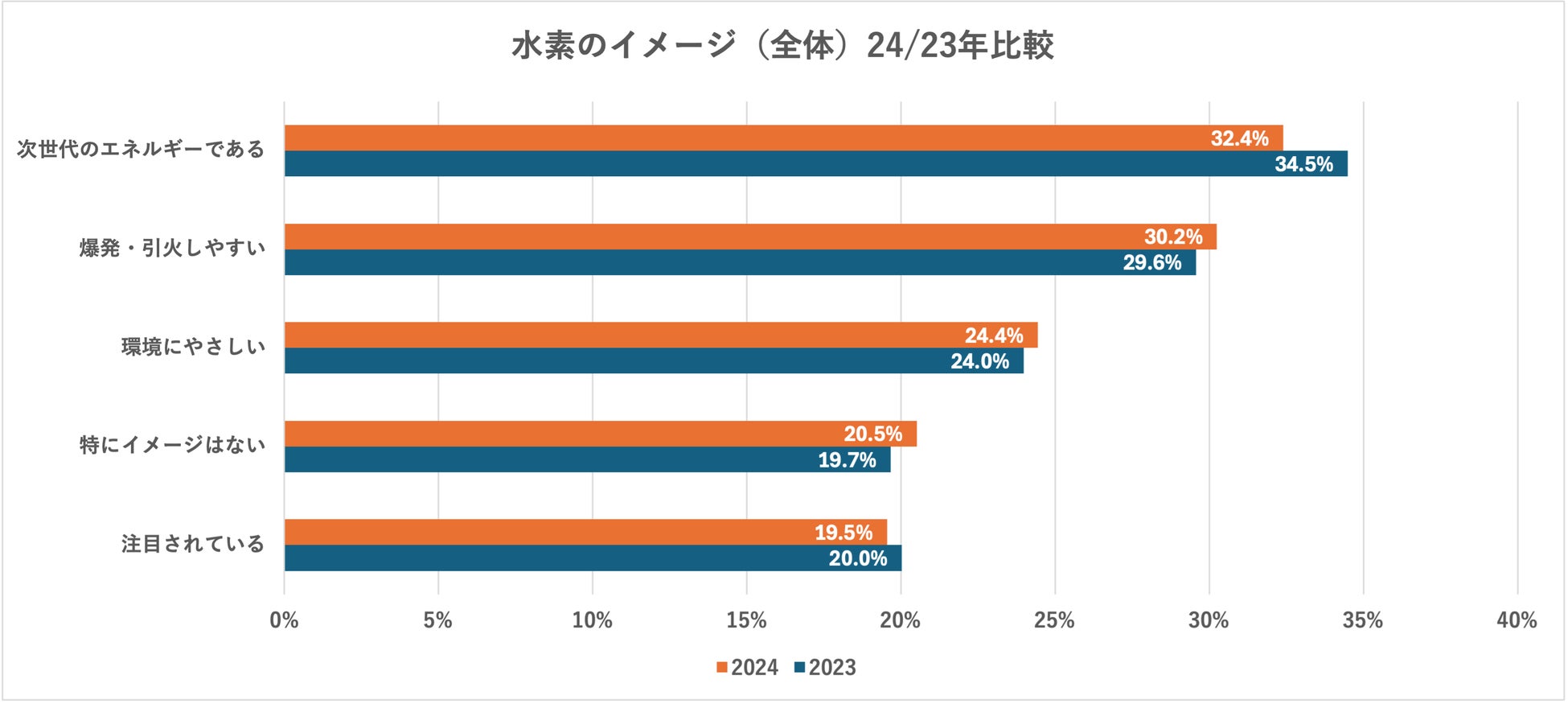 昨年とほぼ同様の結果に、水素のイメージの上位は「次世代のエネルギーである」「環境にやさしい」「爆発・引火しやすい」。