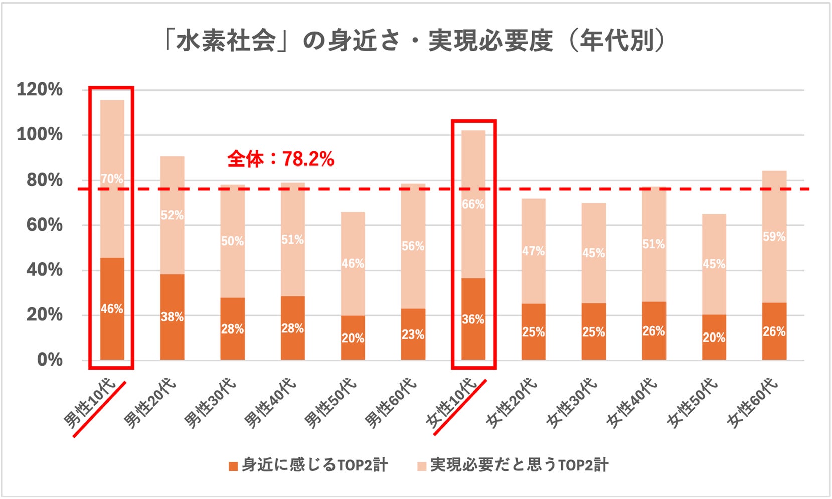 「水素社会」に関する認知やイメージは昨年同様の傾向。一方、認知・理解が深まれば「水素社会」に対する実現必要度や身近さが高まることや、Z世代の認知・内容理解が高いことなどを新たに確認