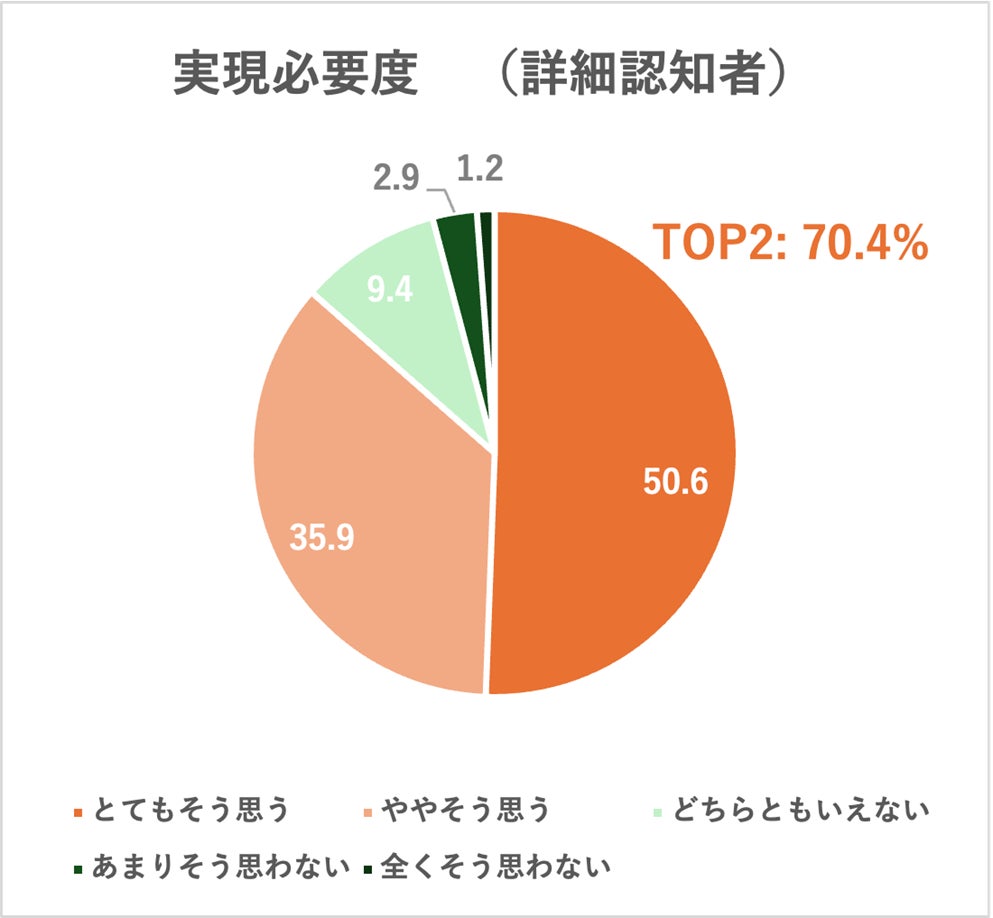 実現必要度に関しても同様に、全体51.4%に対して詳細認知者のスコアは70.4%と大幅に高いスコア。