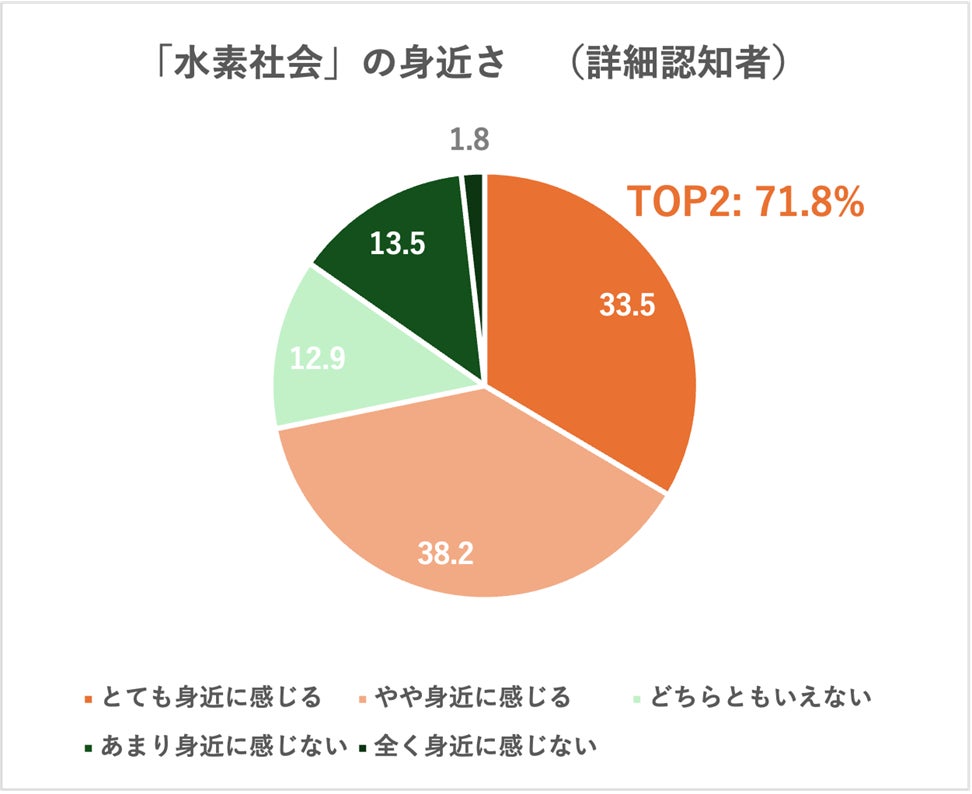全体ベースの身近さ(26.8%)に対して、詳細認知者(人に説明できるレベルに水素社会の内容を知っている)の身近さは71.8%と、3倍弱の違い。