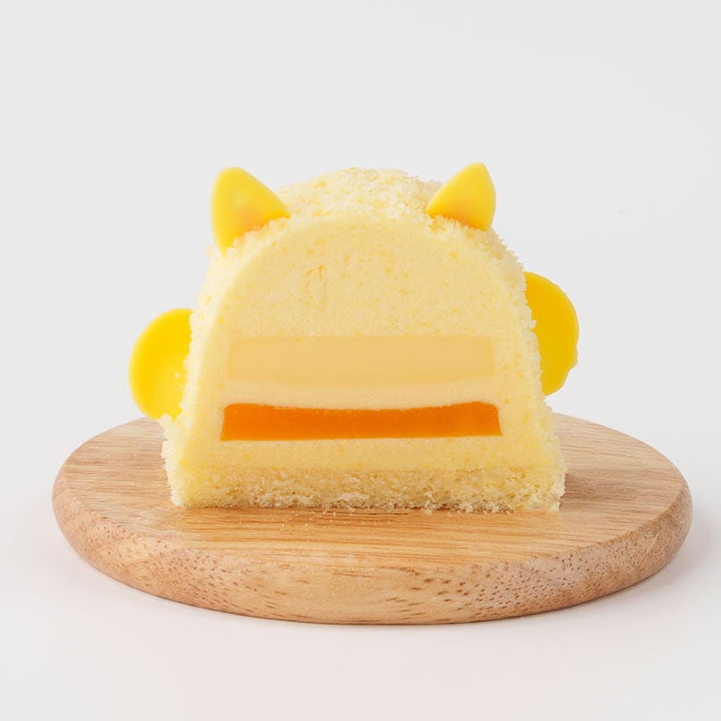 愛知県の地元食材「名古屋コーチン」の卵を使ったプリンを、バニラの香り豊かなババロアで包み込み、粉末状にしたスポンジをまとわせた、ふんわり「ひよこ」の形に飾り付けた生スイーツです。