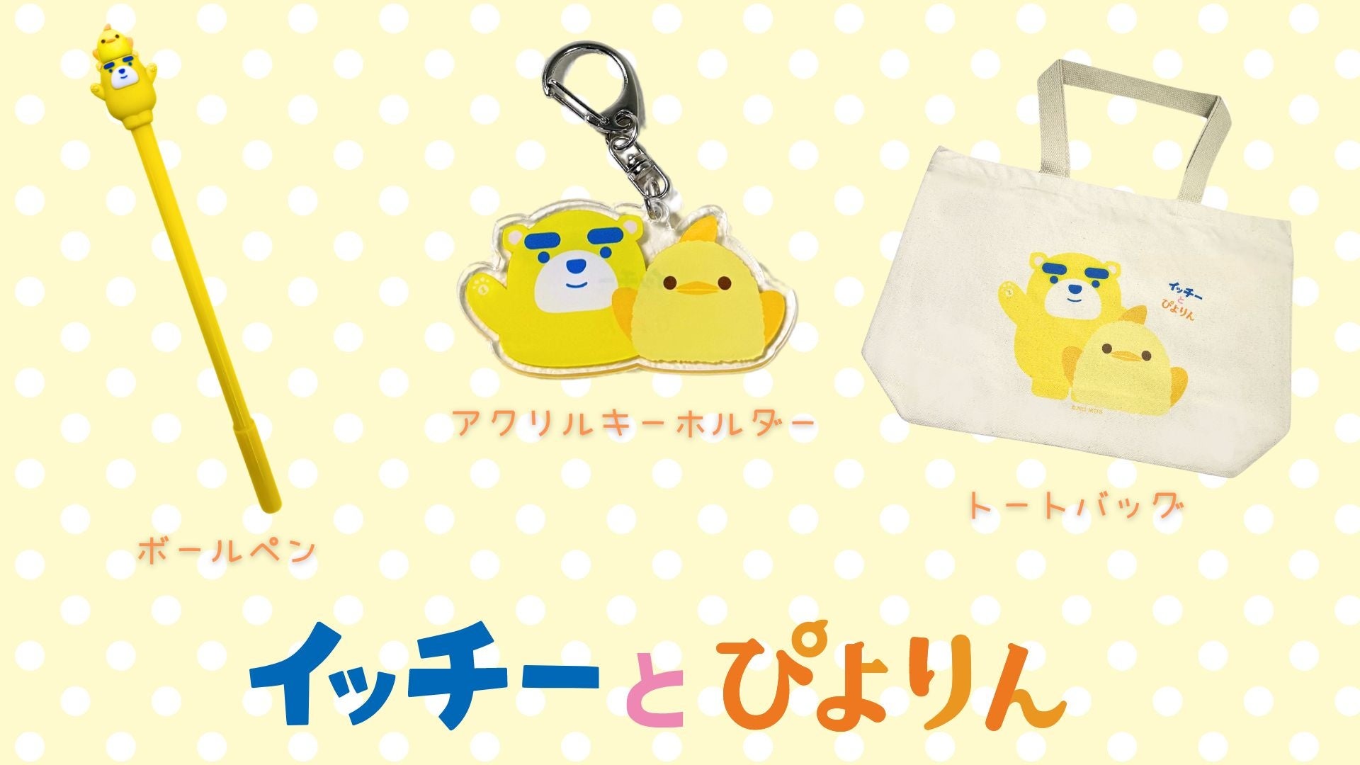 イベント会場では、トートバッグや今治ハンドタオル、ボールペン、アクリルキーホルダーなど、イベント限定の「イッチーとぴよりん」コラボグッズが販売されます。(全6種類)