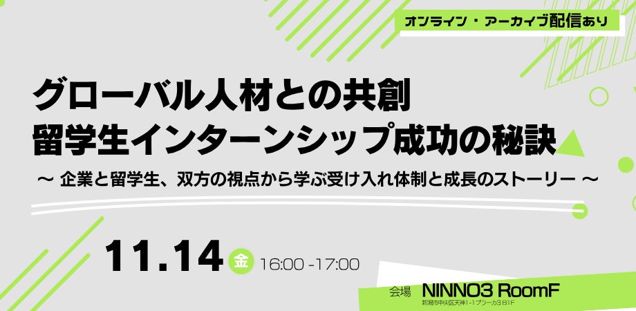 「グローバル人材との共創:留学生インターンシップ成功の秘訣~企業と留学生、双方の視点から学ぶ受け入れ体制と成長のストーリー~」を11月14日に開催します。