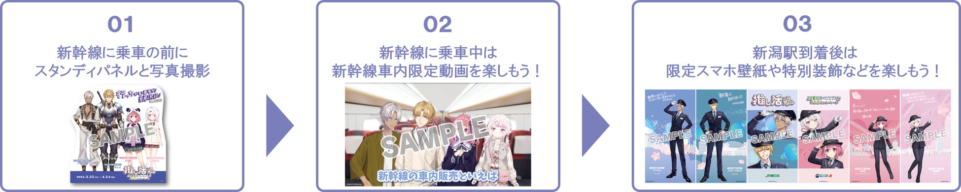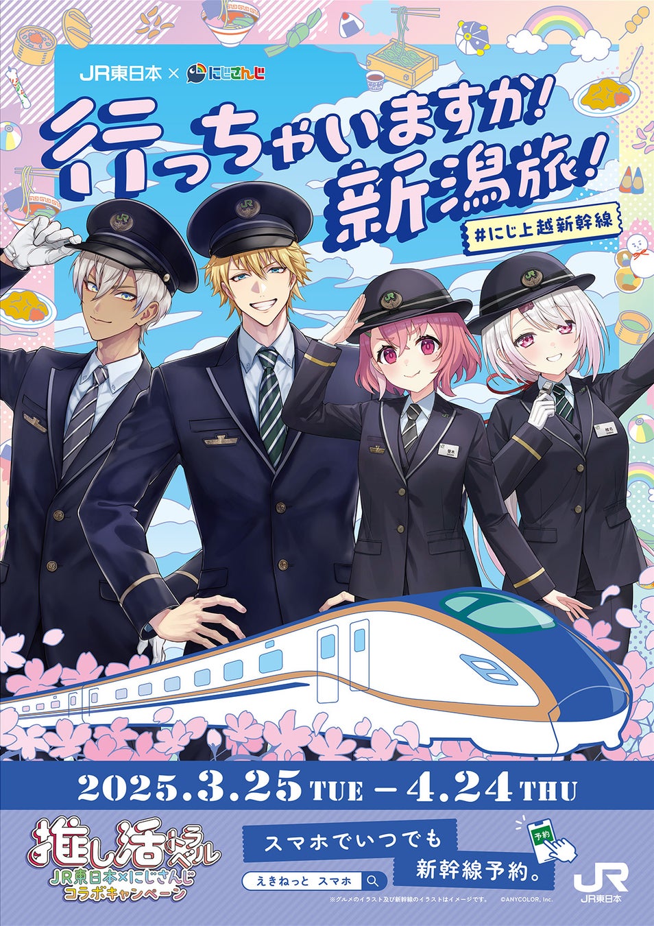 にじさんじプロジェクトに所属するVTuberのイブラヒムさん、エクス・アルビオさん、笹木咲さん、椎名唯華さんと一緒に上越新幹線に乗って、春の新潟への旅をお楽しみいただくキャンペーンです。