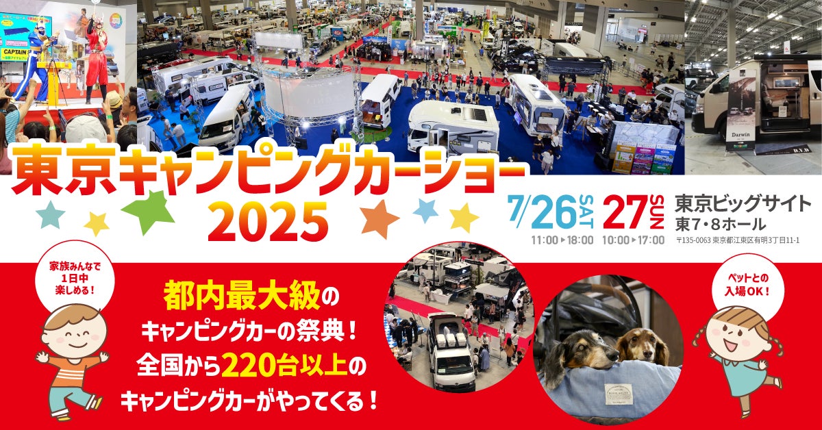 東京キャンピングカーショー実行委員会(事務局:一般社団法人 日本RV協会、株式会社ブシロードムーブ、株式会社ネオプロジェクト)は、2025年7月26日(土)~27日(日)に開催する「東京キャンピングカーショー2025」の会場マップとステージ追加登壇者、プレゼントキャンペーンの情報を公開いたします。報道関係者の皆様におかれましては、ぜひご掲載・お問い合わせのほど、よろしくお願い申し上げます。