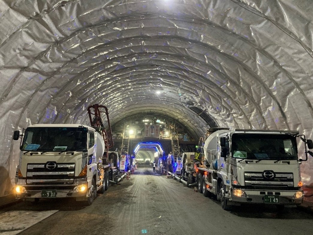 中日本高速道路株式会社名古屋支社の発注で当社が施工する「東海環状自動車道養老トンネル北工事」において、覆工コンクリートの「自動打設システム」と「養生温度制御システム」を適用しました。