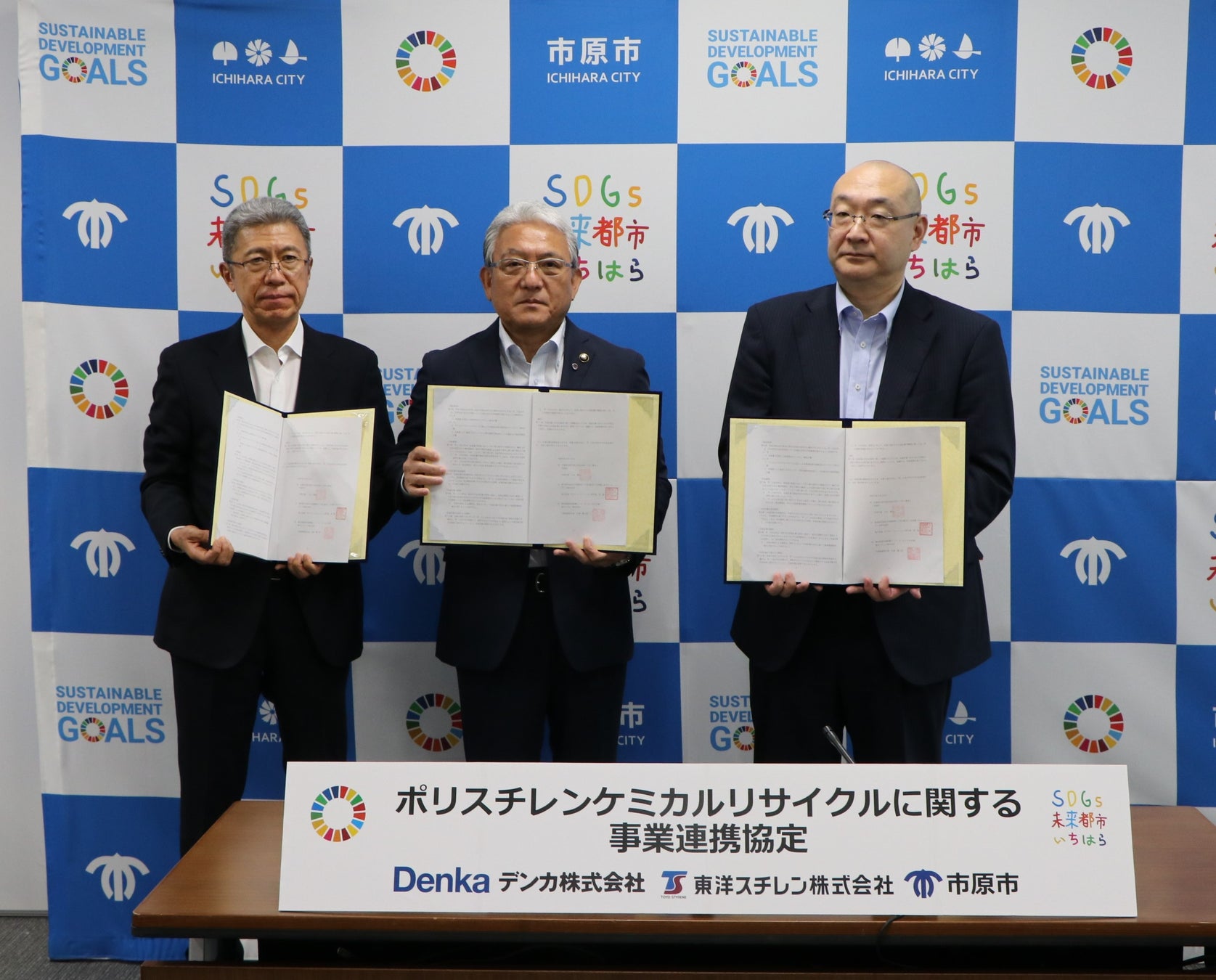 【千葉県市原市】デンカ株式会社・東洋スチレン株式会社・市原市の3者でポリスチレンケミカルリサイクルに関する事業連携協定を締結しました