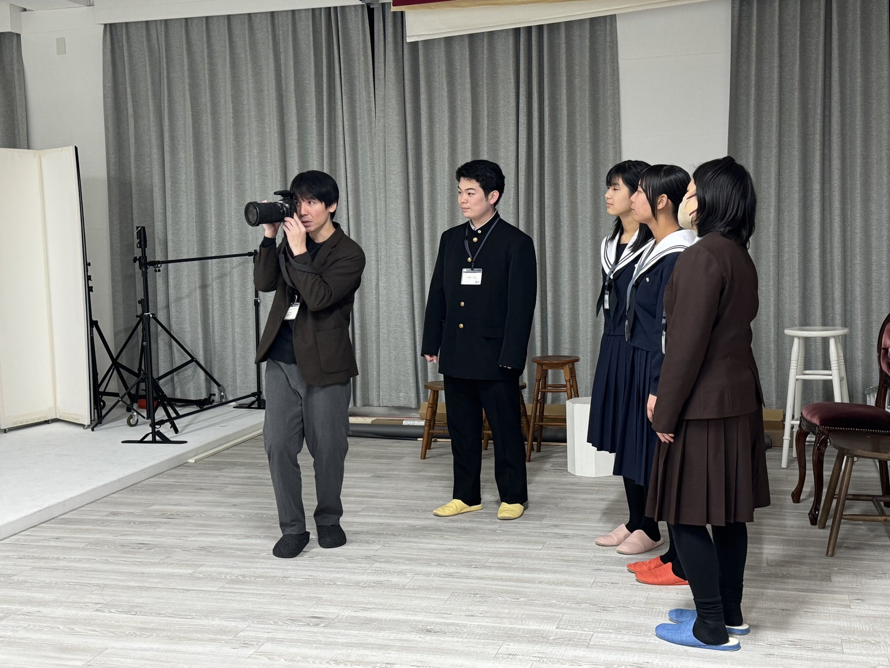 その取り組みの一環として、昨年初めて春日井高校写真部の部員の皆さまを対象に、自社スタジオにてプロカメラマンによる特別講座を実施しました。実施後には、生徒の皆さまや教職員の方々から「普段触れることのないスタジオ機材を使った体験で楽しかった」「風景だけでなく人物を撮る視野が広がった」といった多くの好評の声をいただきました。