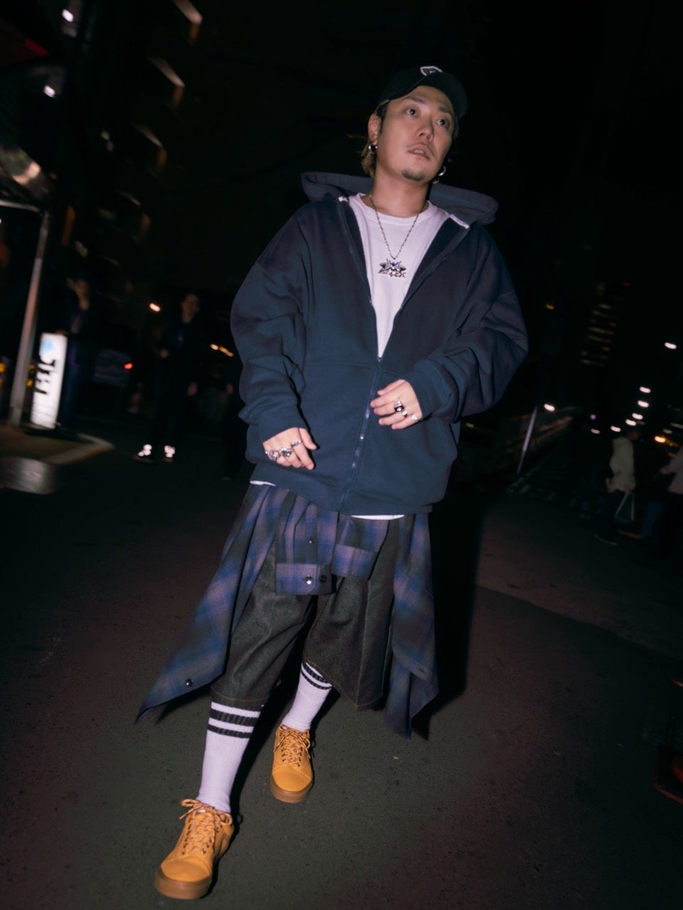 JUBEEはヒップホップクルー、CreativeDrugStoreをはじめ、ダンス・ミュージックやミクスチャー・ロックなどジャンルの垣根を超えて最新のミクスチャーサウンドを生み出しているラッパー・ビートメイカーです。ビジュアルではOLD SKOOL、UPLANDに合わせたストリートコーデを披露しています。