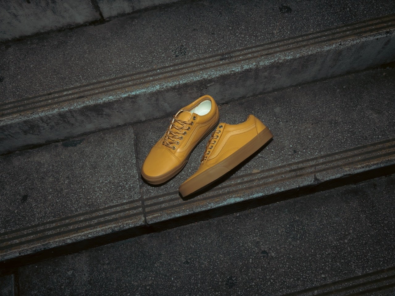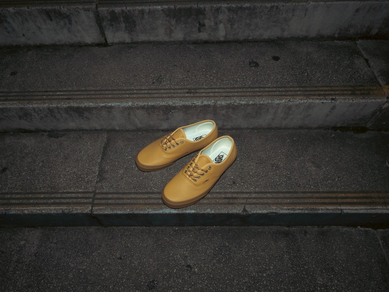 アッパーに上質なヌバックレザーを採用し、ワークブーツを彷彿させるロープ風のシューレースを使用。AUTHENTIC、OLD SKOOLにはゴールドのレースホールを使用し、ワイルドな雰囲気を演出。