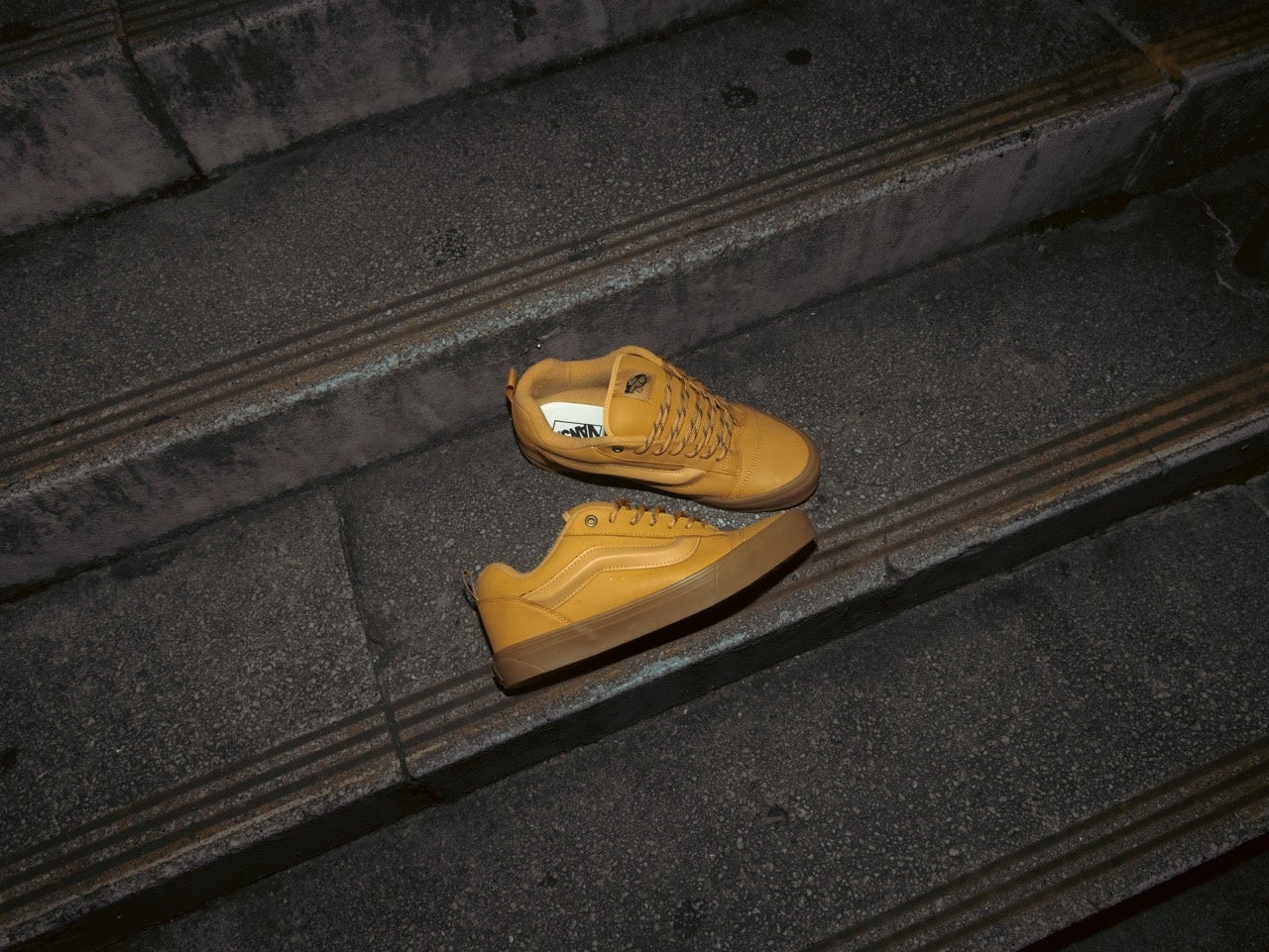 アッパーに上質なヌバックレザーを採用し、ワークブーツを彷彿させるロープ風のシューレースを使用。AUTHENTIC、OLD SKOOLにはゴールドのレースホールを使用し、ワイルドな雰囲気を演出。KNU SKOOL、UPLANDはボリューム感のあるシルエットが90年代のスタイルを彷彿とさせます。