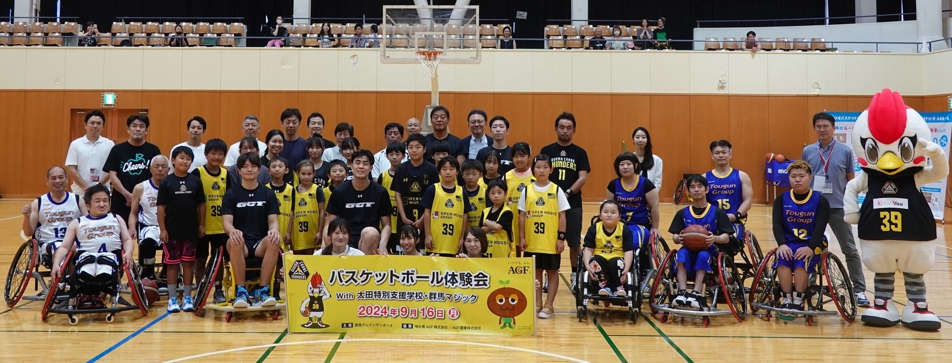 味の素AGF株式会社(代表取締役社長:島本 憲仁 以下、味の素AGF)は、2024年7月に2024-25シーズンのオフィシャルパートナー契約を締結したプロバスケットボールチーム「群馬クレインサンダーズ」を運営する株式会社群馬プロバスケットボール コミッション(代表取締役社長:阿久澤 毅、所在地:群馬県太田市)と、本年度契約後はじめての地域社会貢献活動として「太田特別支援学校の児童・生徒たちと一般公募参加者合計55人を招いたバスケットボール体験会」を2024年9月16日(月)に開催しました。