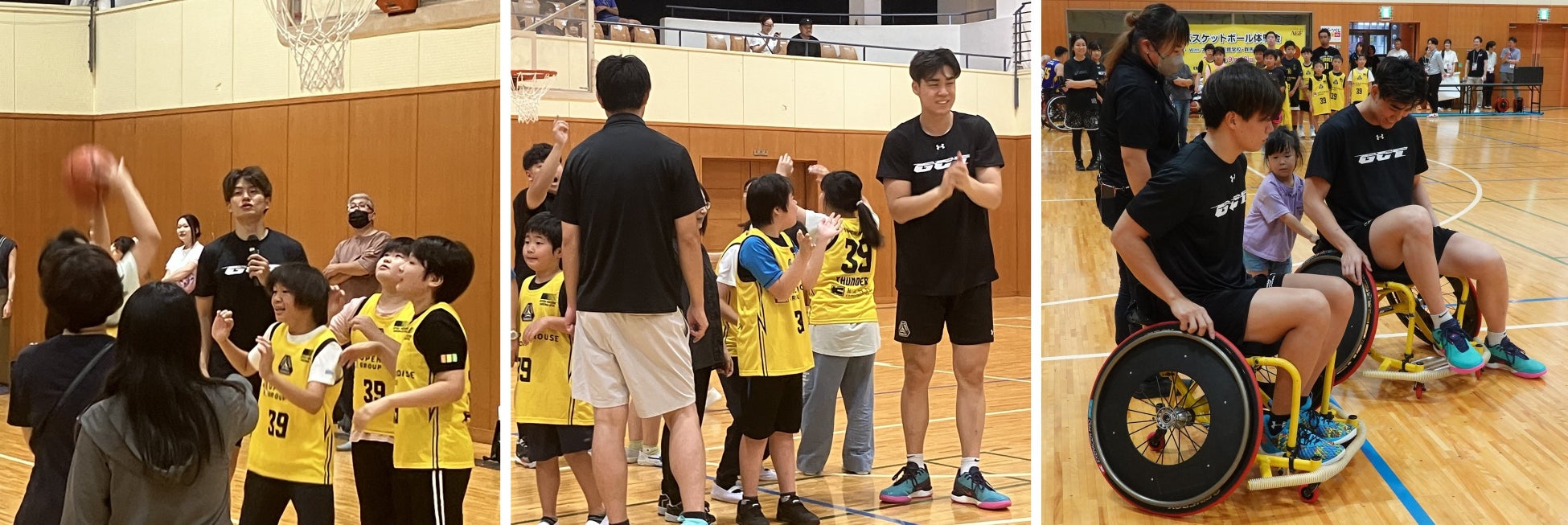 本体験会は二部構成となっており、第一部では群馬クレインサン ダーズ所属の選手が群馬県立太田特別支援学校の児童・生徒とバス ケットボールを楽しむ交流型体験イベント、第二部では車椅子バス ケットボールチーム群馬マジックの選手と一般で公募した参加者が車椅子バスケットボールを体験するイベントをそれぞれ実施しました。
