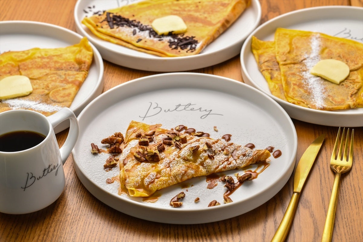 11月22日(土)~24日(祝・月)のイベント期間中に「Buttery Cafe」をご利用いただいた方へ、オープン2周年記念の特別なプレゼントをご用意しています。また、フランス産発酵バターの『クレープ』を4種類販売します。