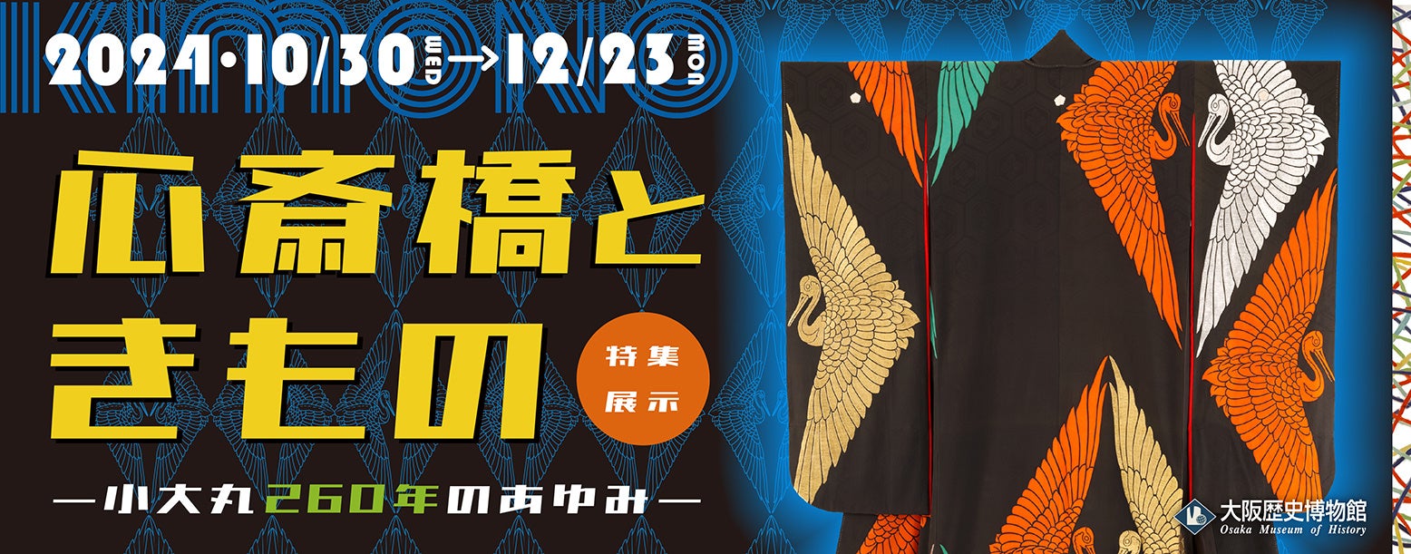 大阪歴史博物館では、令和6年(2024)10月30日(水)から12月23日(月)まで、8階特集展示室において、特集展示「心斎橋ときもの ―小大丸260年のあゆみ― 」開催します。