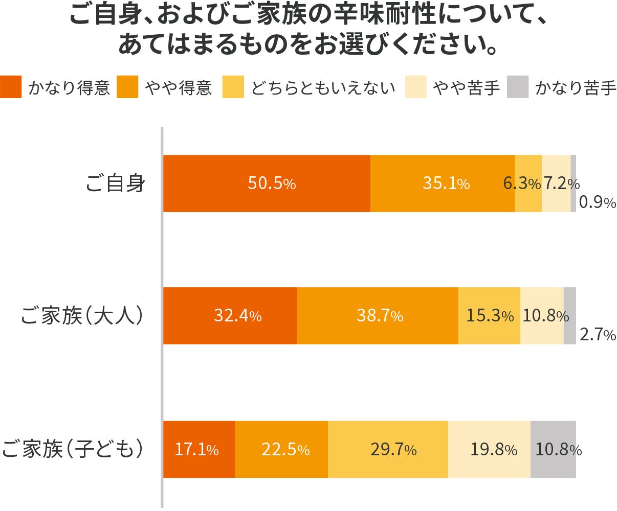 日本最大級の料理写真共有アプリ「Snapdish」(以下、スナップディッシュ)を運営するスナップディッシュ株式会社(所在地:東京都武蔵野市、代表取締役:舟田 善)協力のもと、同アプリのユーザーを対象に発売前の「辛みそ」でテストモニターを実施しました。調査では高まる辛味トレンドの中で大人の辛味好意度は85%以上。一方、子どもは40%未満という結果となり、家族内の“辛さギャップ”問題が明らかになりました。この解決策として、ちょい足し調味料のニーズが高まり「辛みそ」は高い評価を受けています。辛味が得意な大人も高い満足度(かなり辛味に得意なユーザーの92.8%が非常に満足)を得るという結果となりました。